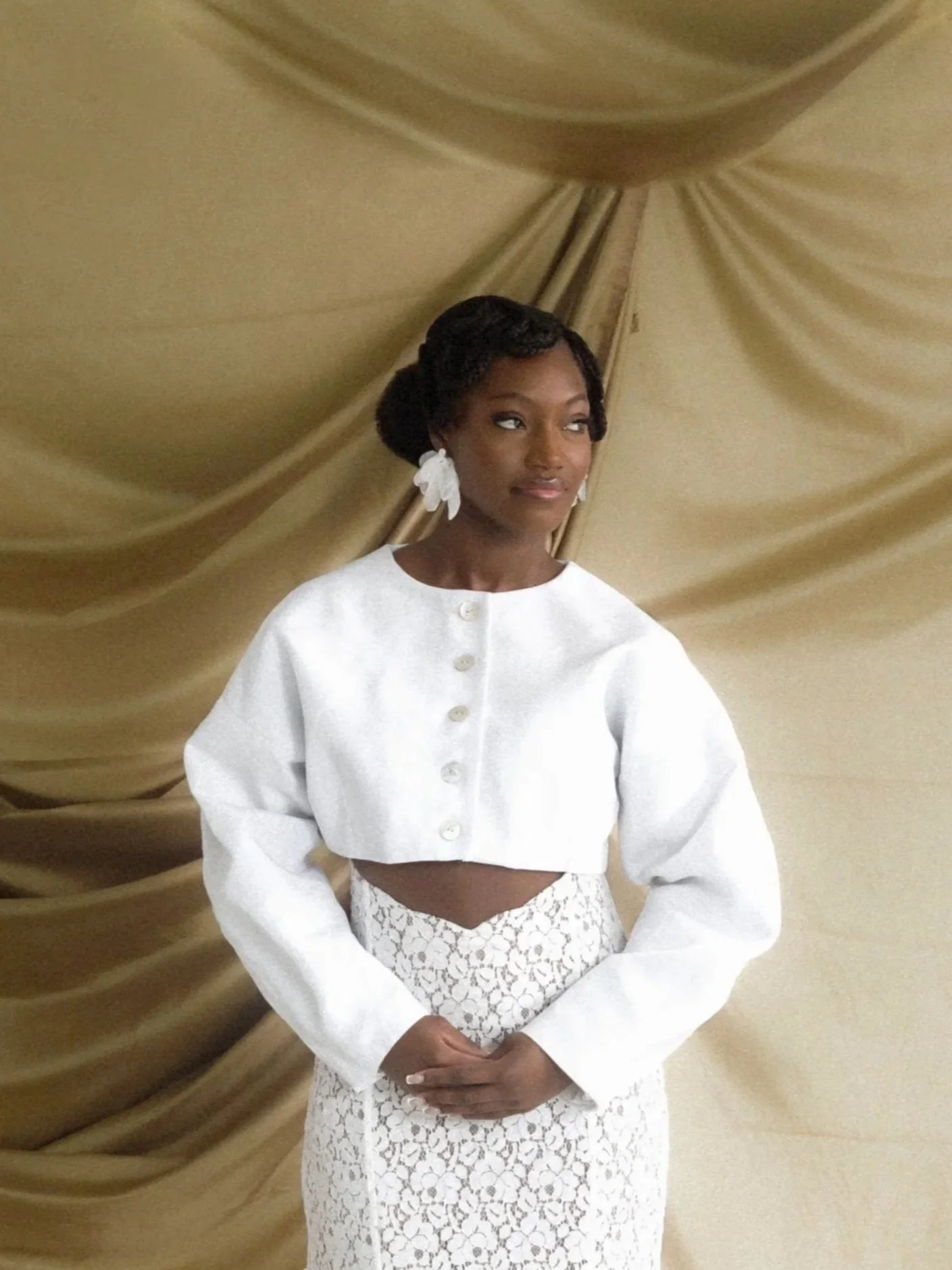 A tribute to the women who came before us. Inspired by the founder’s mother on her wedding day, this campaign celebrates lineage, memory, and becoming. Through ivory adire, lace, and reimagined iro & buba silhouettes, Fumilayo honours tradition while dressing the modern bride. This is more than a wedding look, it is a continuation of her story.
